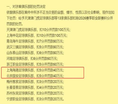 國安上港罰單中國足協(xié)中國足球職業(yè)聯(lián)賽上海國際港務(wù)