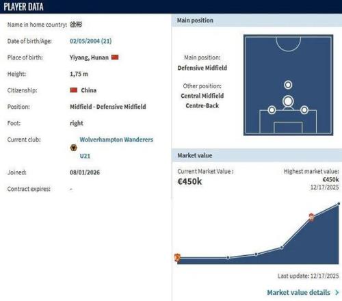 21歲的中國U23國家隊隊長、湖南籍球員徐彬,已正式完成轉(zhuǎn)會,加盟英超狼隊足球俱樂部的U21梯隊,其最新身價被評估為45萬歐元。這標志著又一位中國青年才俊,踏上了充滿挑戰(zhàn)的歐洲足壇征程。